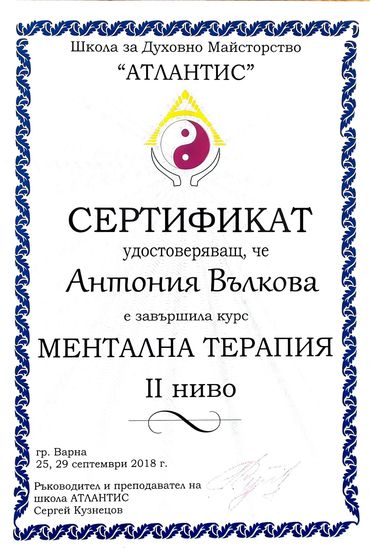 Аз съм Антония Вълков и през последните 15 години съм се посветила на холистичната медицина. След 23 години в чужбина, където натрупах опит и знания в различни холистични практики, реших да се завърна в България, за да споделя тези умения и да помогна на повече хора да постигнат баланс и благосъстояние.